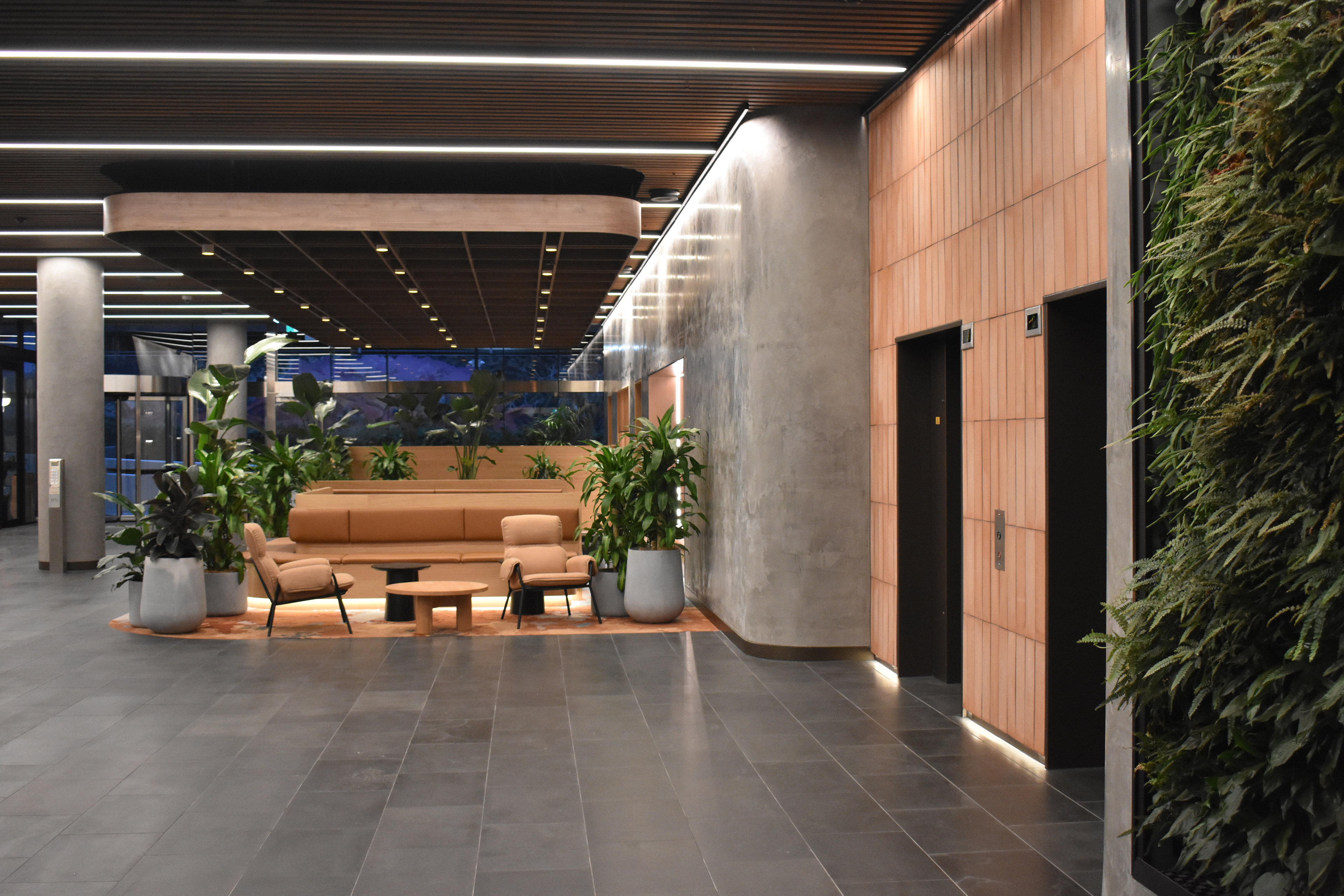 The result is a cohesive, comfortable, and highly functional environment that supports both work and social interaction, a space where architecture and lighting work in harmony to redefine the building’s identity and elevate the everyday experience of its tenants and visitors.