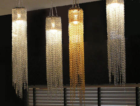 Our attitudes to jewellery are changing . After the “tasteful” minimalism of the 90’s, expressive and extravagant jewellery is back on the fashion radar. Made with silver and gold chains, the Bling Bling lights were created for the Absolut Bar Sydney.