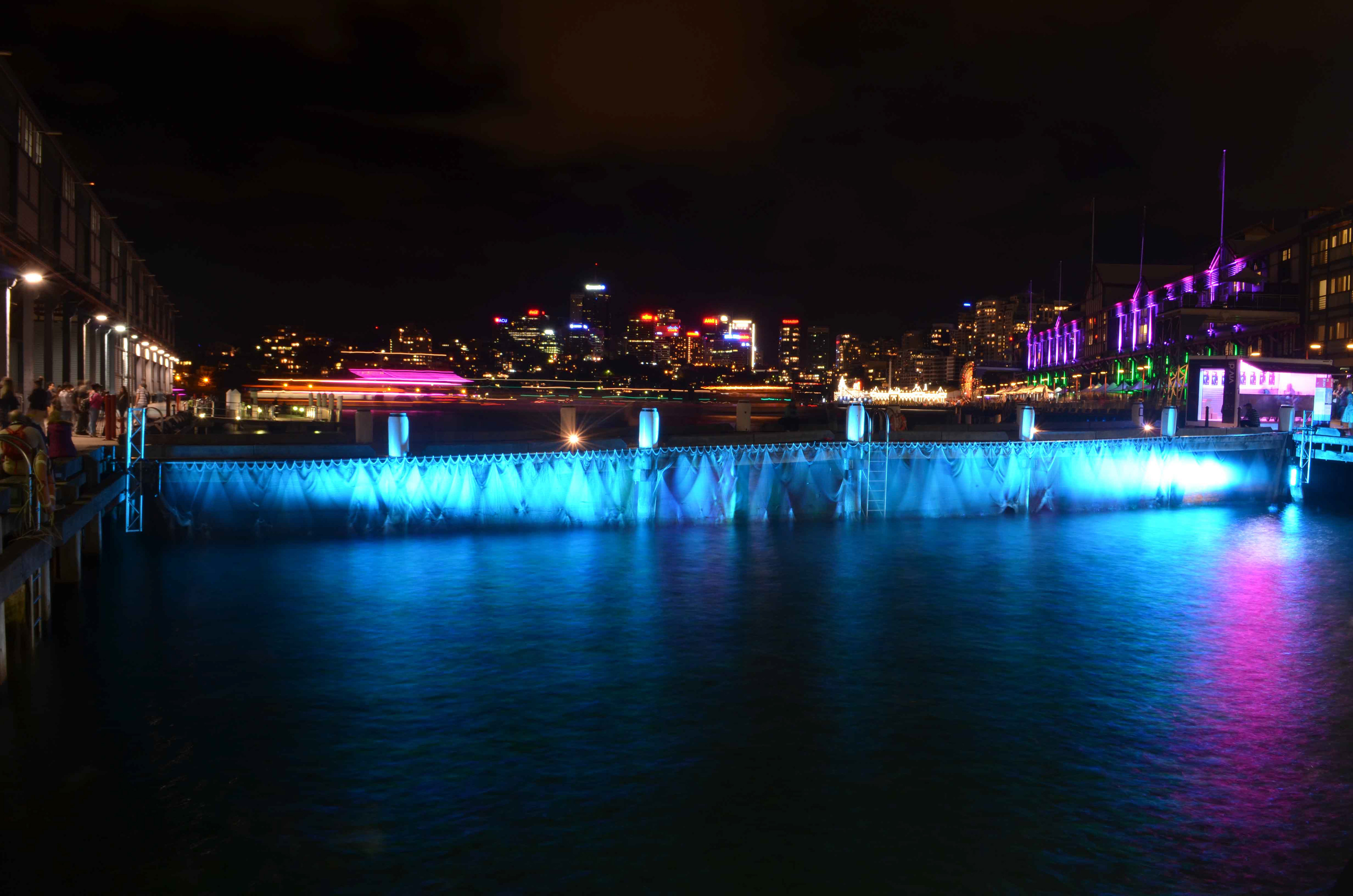 Fishing at night has a special romantic quality – many of us remember warm summer evenings, using nets to gather prawns on the beach during the moons cycle. Wading through warm water, with the elusive prey just out of reach, the nets gleaming in flashlight thrown into relief against inky, black water. In this light art installation lengths of reflective net are suspended under wharves, to create an undulating, ghostly light sculpture, shimmering with colour-changing LED, and moving gently with the tides.