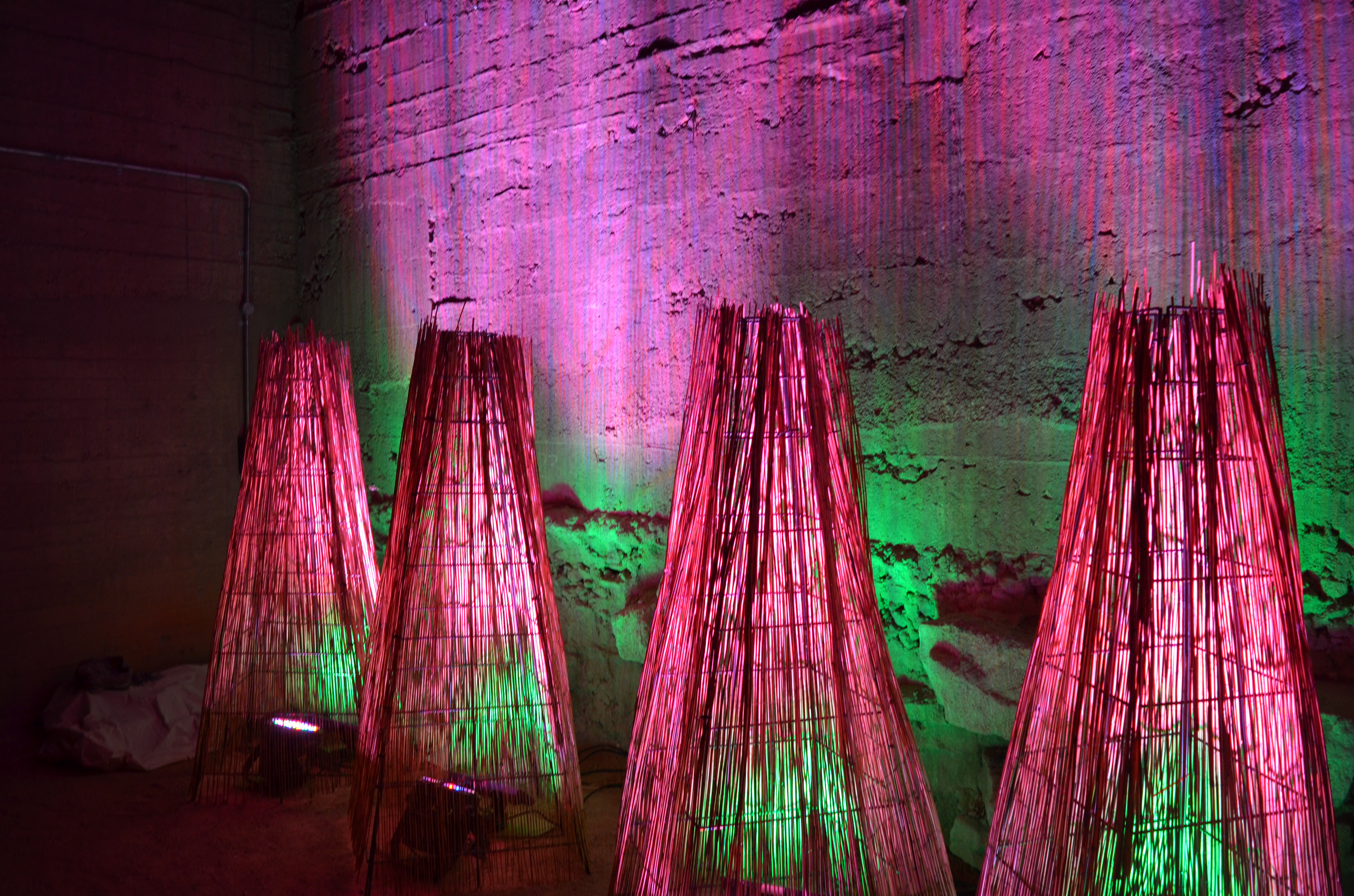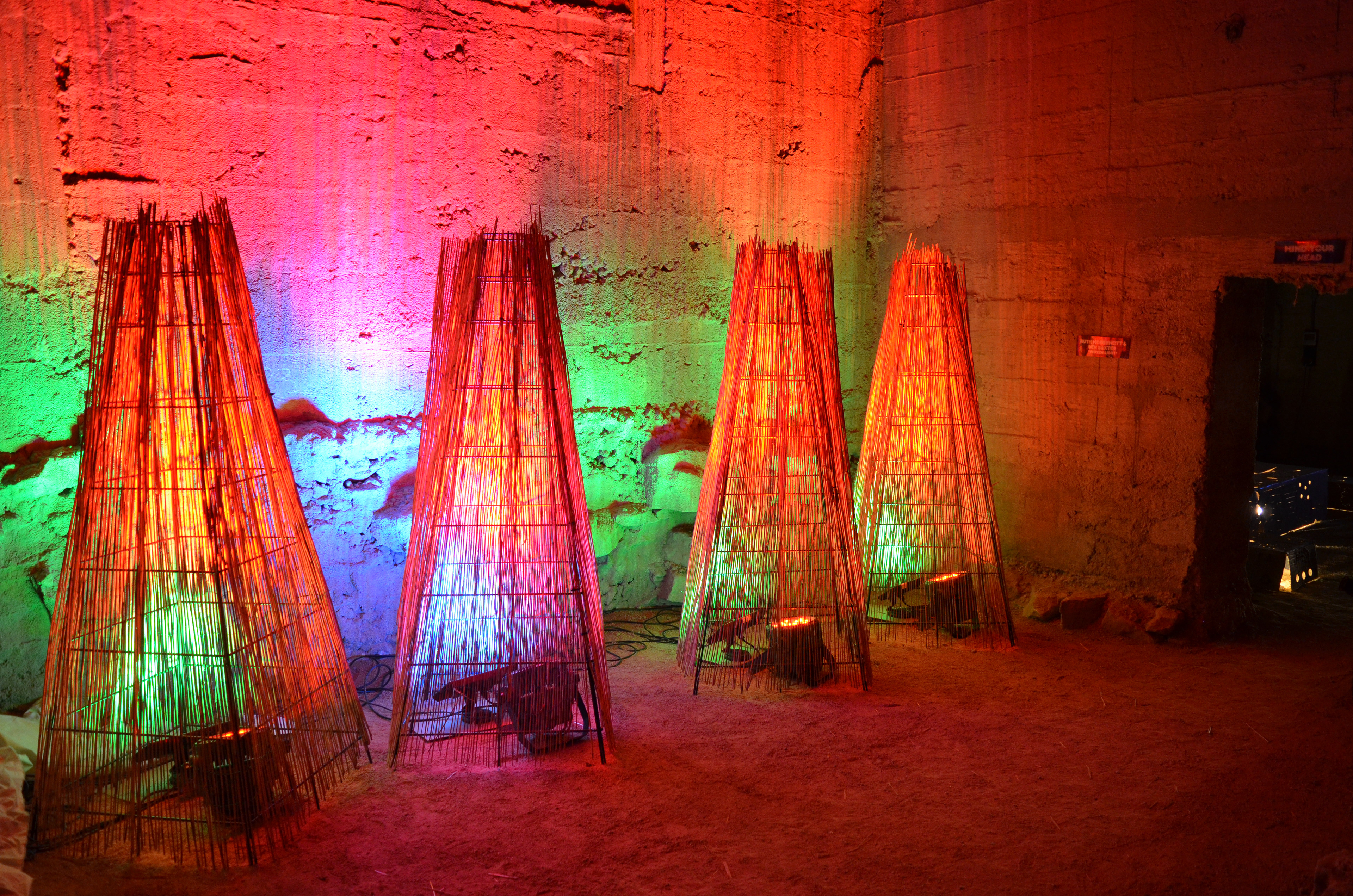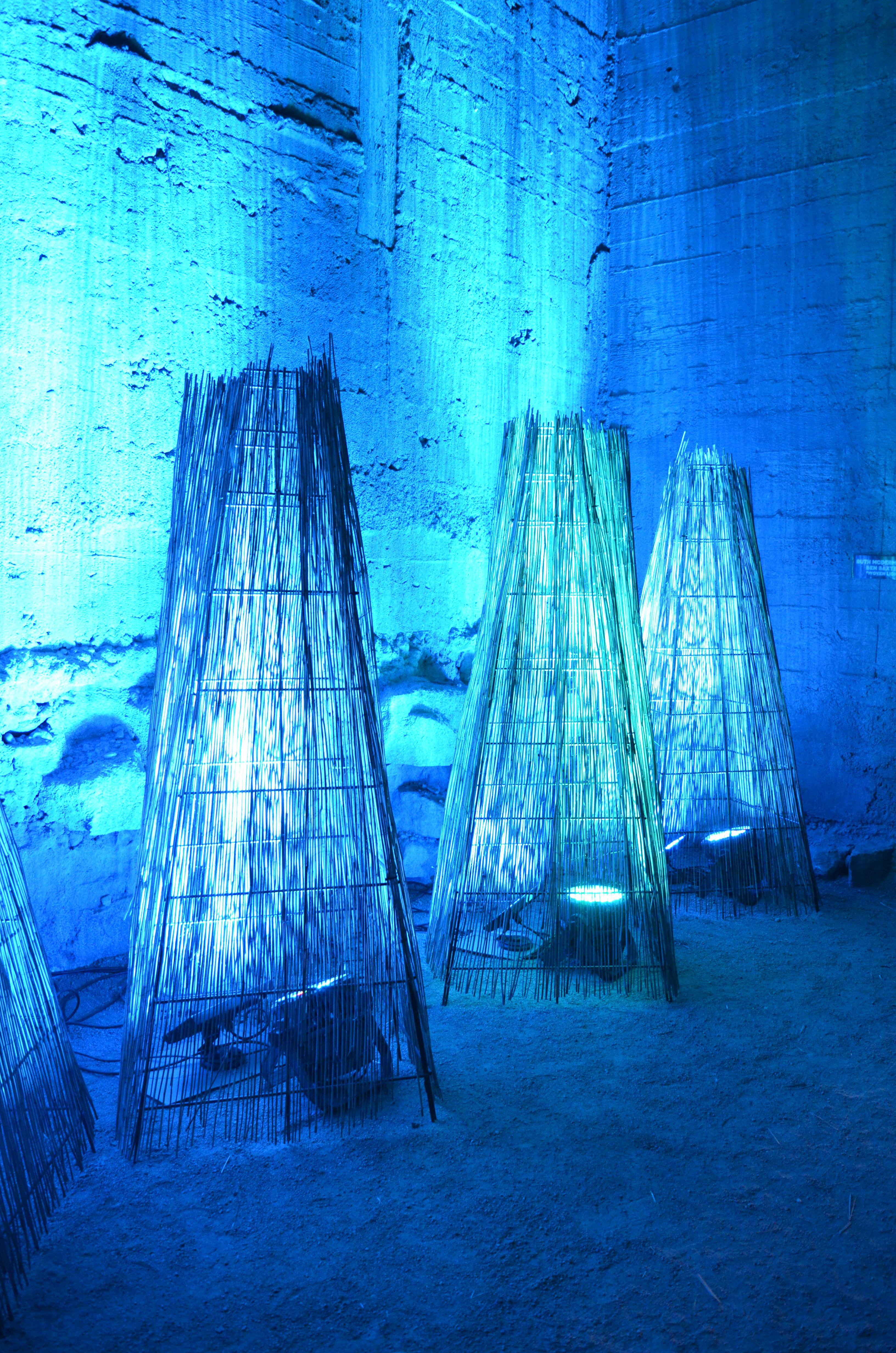 A LIGHT INSTALLATION FOR A FESTIVAL IN THE COAL LOADER ENVIRONMENTAL CENTRE NORTH SYDNEY COUNCIL. USING HARDWARE STORE MATERIALS AND WORKING AROUND COVID RESTRICTIONS.