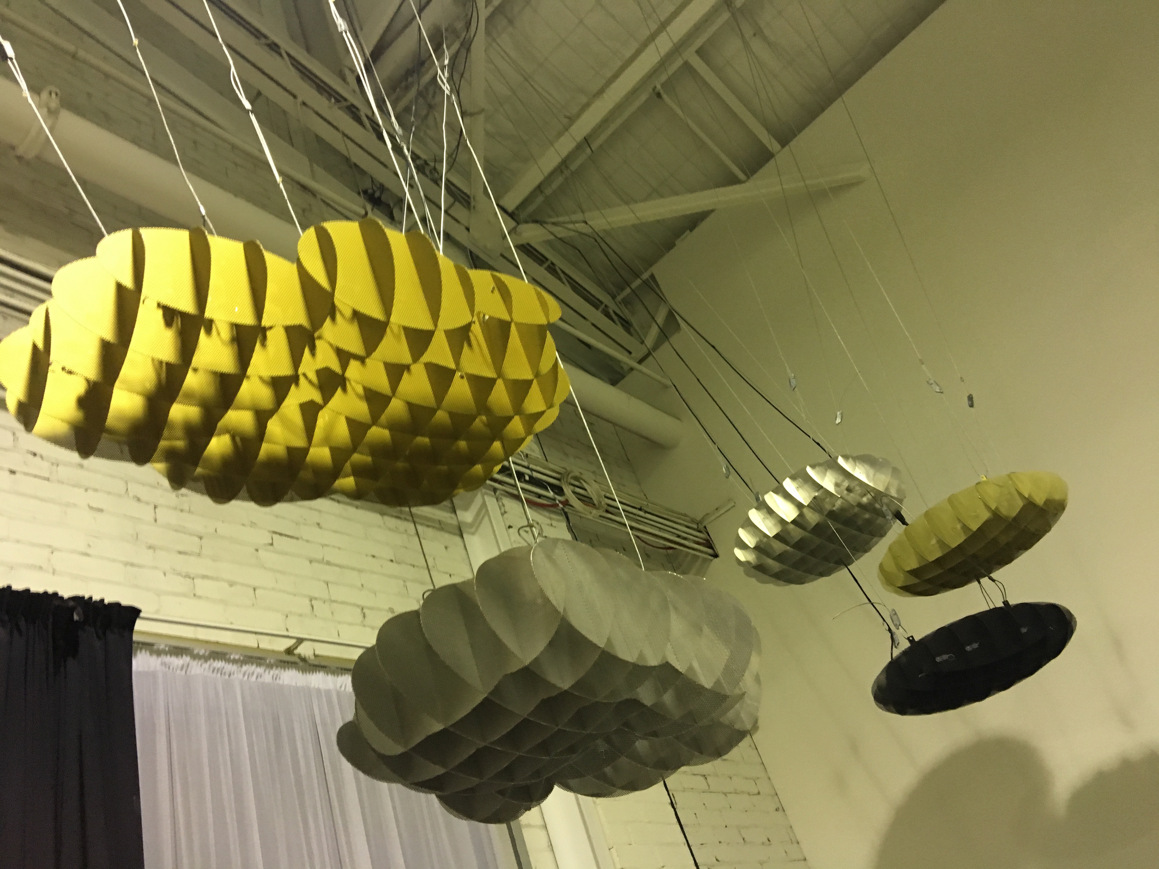 25 colour changing LEDs embedded into the structure programmed to have interesting storm effects and coloured effects of sunrise and sunset. Each light fixture is a lightweight construction made of interlocking pieces which can be disassembled and flat packed for transportation.