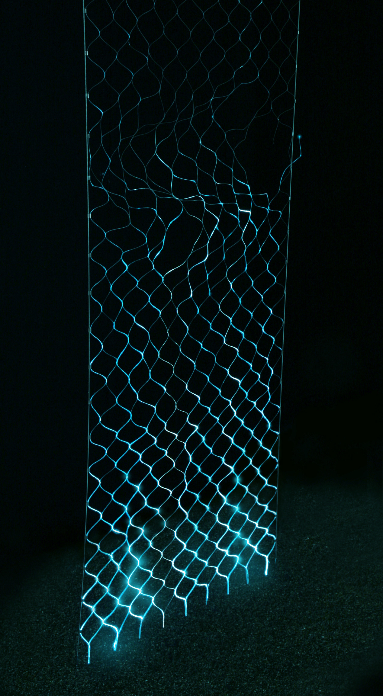 The glowing optic fibres flicker in different shades of blue and turquoise reflecting the colours seen underwater.